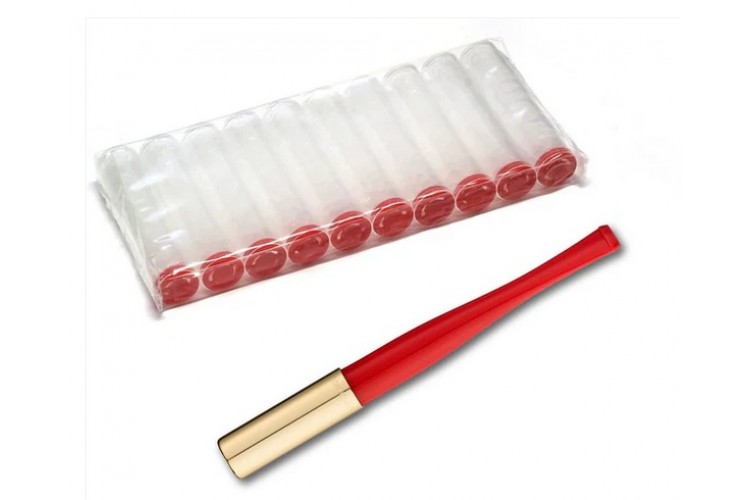 11,4 cm hosszú, automata cigaretta szipka korall piros/arany + 10 db filter