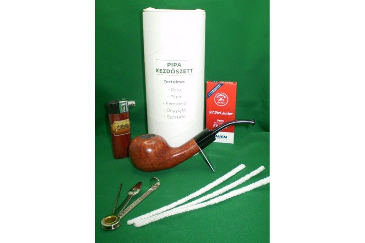 Tartalma: Bruyer pipa, háromfunkciós fémtömő, 3 szál pipatisztító szárkefe, 1 doboz 10 darabos kiszerelésű 9 mm-es Dr. Perl Junior aktívszén szűrő, 1 db pipaöngyújtó.
